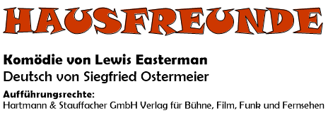 Wir freuen uns riesig, dass wir unter der bewährten Regie von Gabriele Dragon mit dem Theaterautor Lewis Easterman im März 2025 das sehr komödiantische Theaterstück "Hausfreunde" auf die Bühne bringen. Seid gespannt auf eine tolle Komödie mit zwei Freundinnen und reichlich amourösen Verwicklungen. Hinter dem Namen verbirgt sich der bekannte Schweizer Autor Charles Lewinsky.. (weitere Infos hierzu untenstehend)